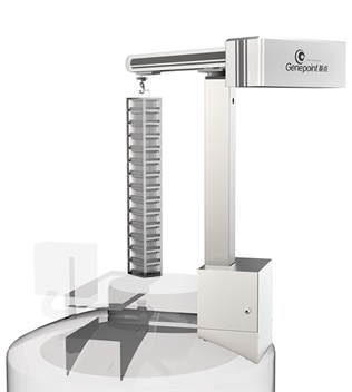 气相液氮罐一般颈口高度约1.5米以上,而冻存架为0.8米,一般实验室人员在提取冻存架时总是很困难,为此基点生物开发出了辅助提升系统解决冻存架提升问题。